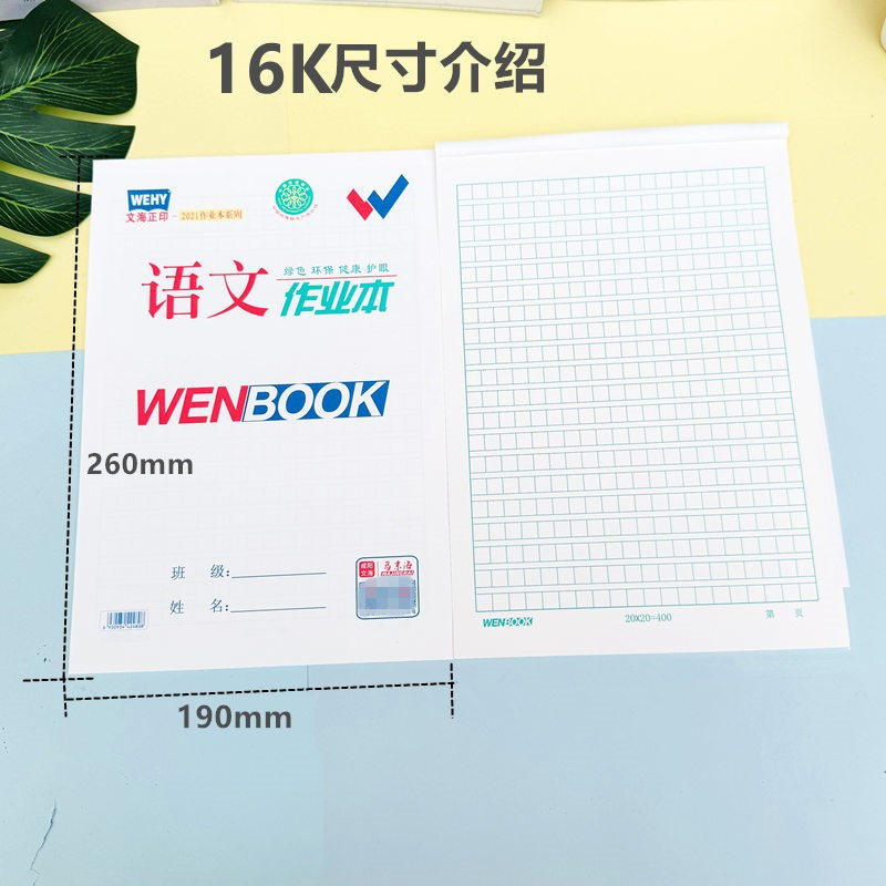 文海正印语文作业本16K大语文方格本400格马京海文海作业本加厚纸张护眼纸