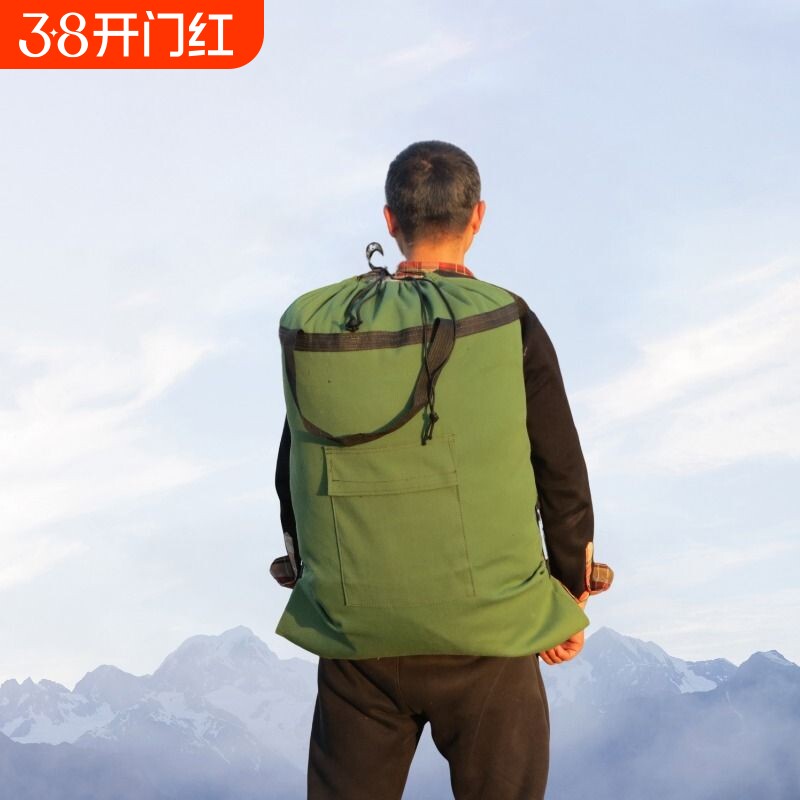 加厚帆布双肩包旅游行李收纳袋加厚帆布袋长背包耐用耐磨防水抽绳