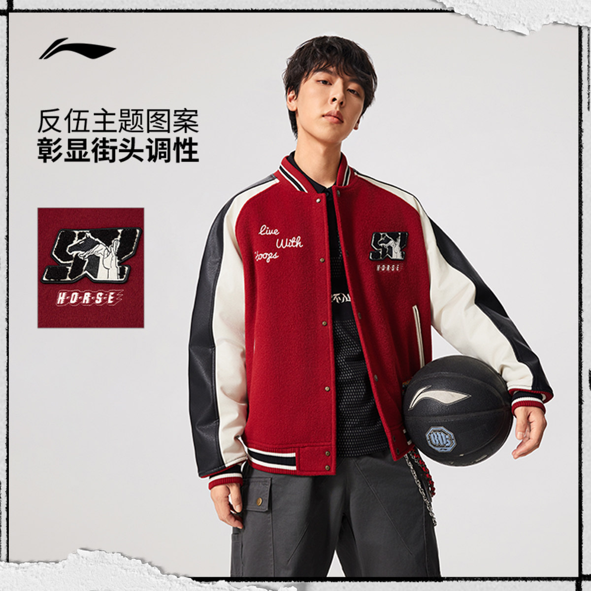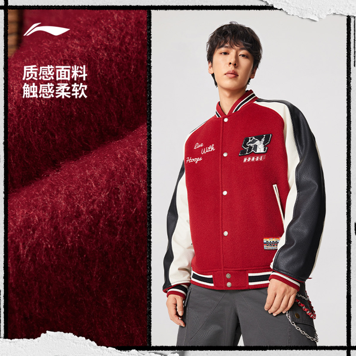 李宁反伍BADFIVE棉服男春季2026新款新年红色外套马年运动棒球服