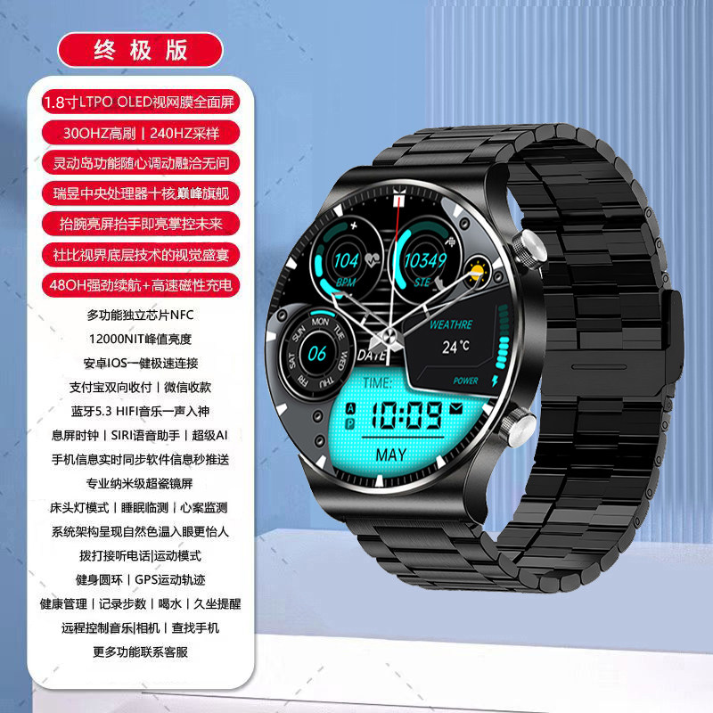 铭胜酷多功能智能手表监测心率血压蓝牙手表运动商务成人手环
