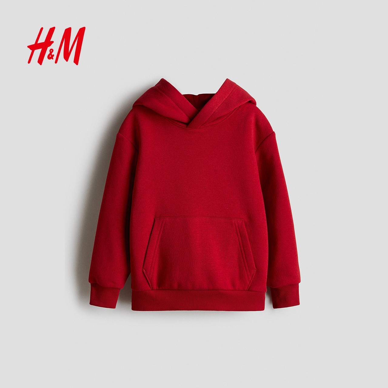 HM童装男童卫衣冬季新款红色圣诞加绒连帽上衣长袖绒衫0542551