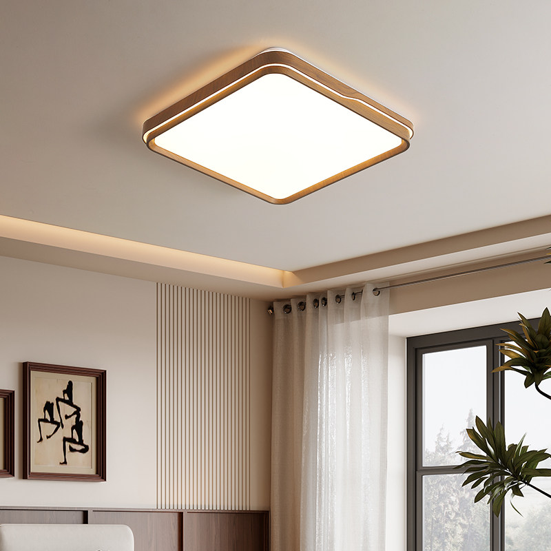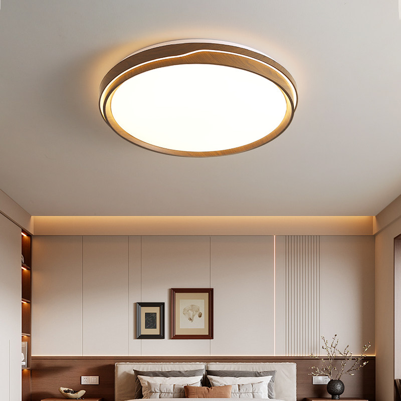 卧室灯具中古风客厅吸顶灯全光谱护眼复古胡桃木色主卧书房灯遥控