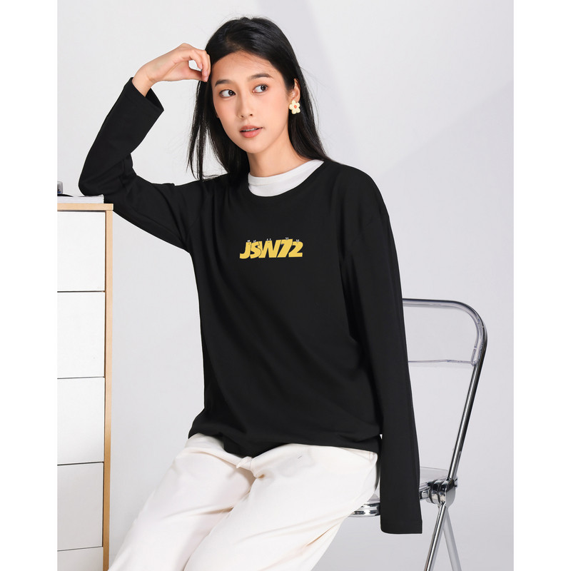男女同款圆领长袖T恤 印花点缀显活力