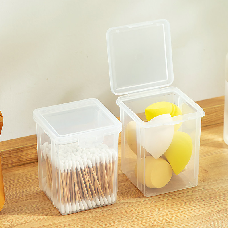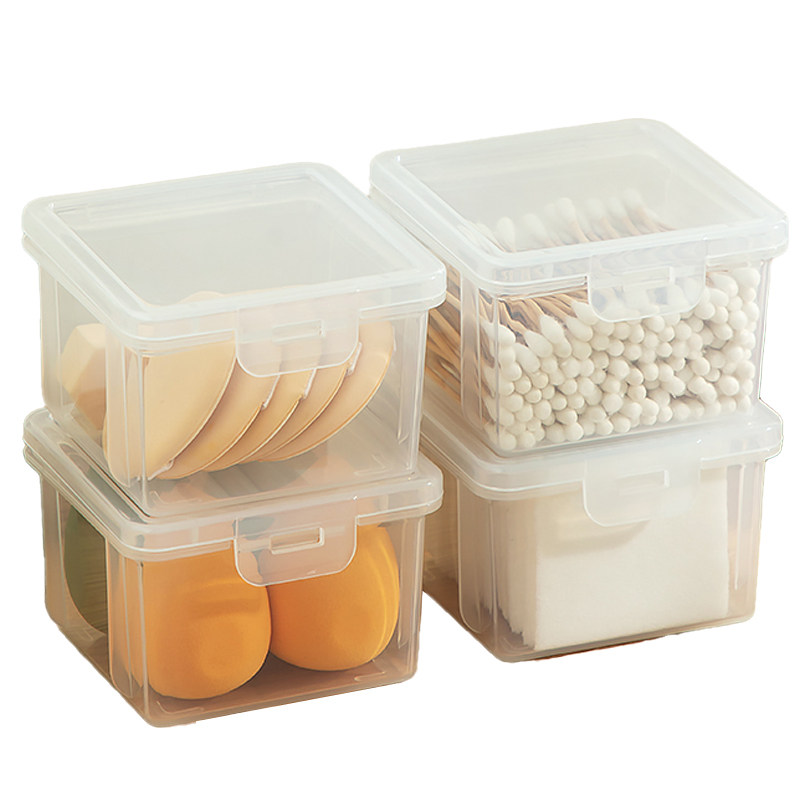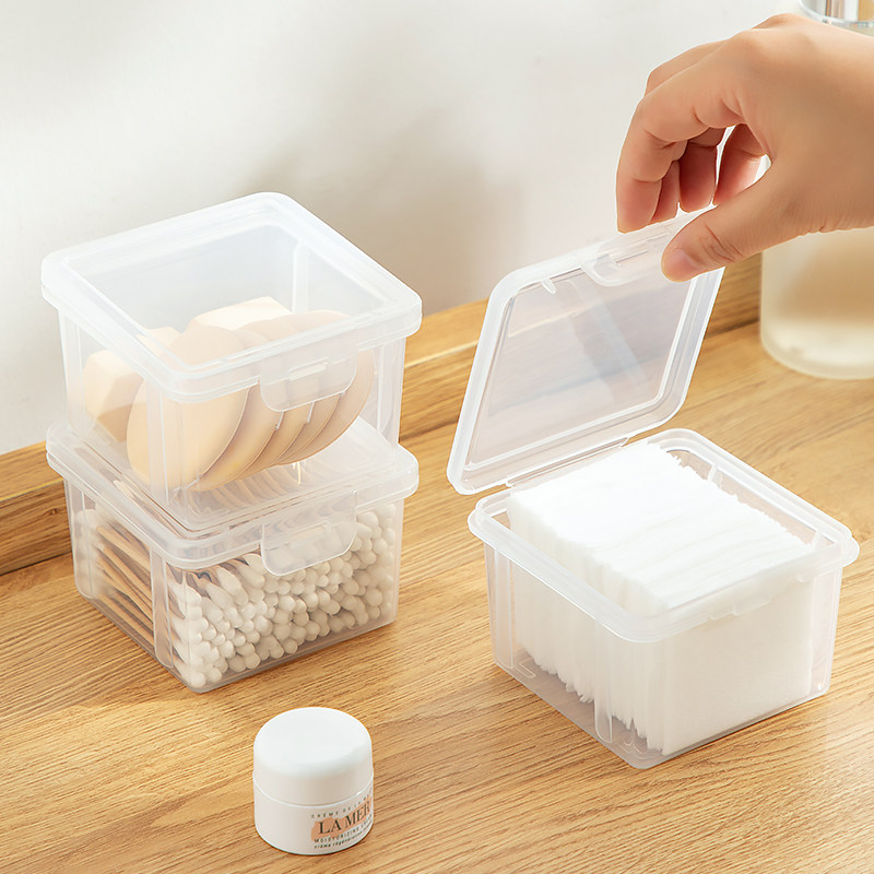 化妆室化妆棉卸妆收纳浴室透明置物发夹皮筋口红盒子长方形密封