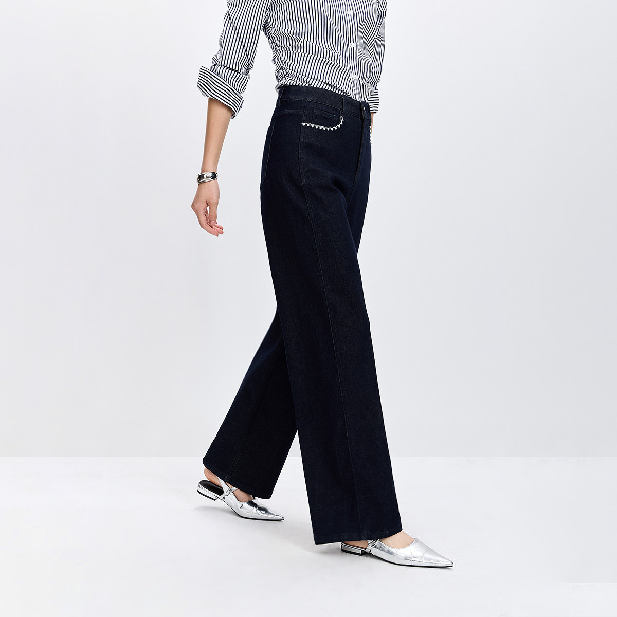 twosweet【超级裤神】四面弹重塑大长腿高腰直筒微喇叭原色牛仔裤