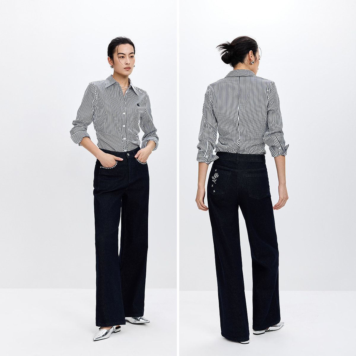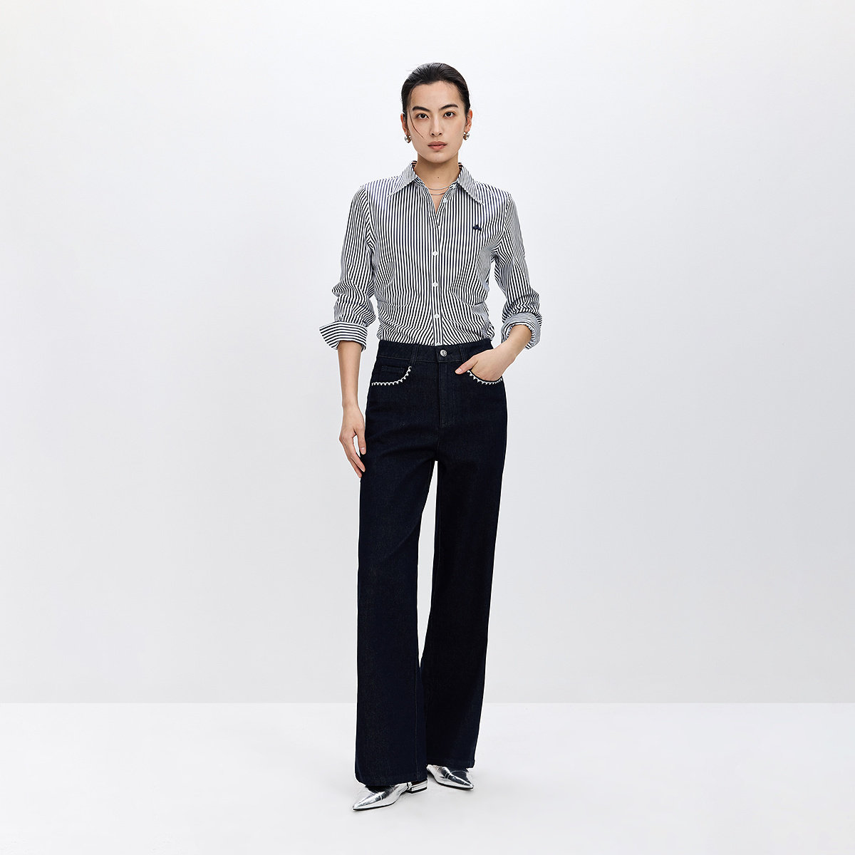 LILY2026春新款女装复古刺绣休闲百搭高腰显瘦小个子牛仔裤直筒裤