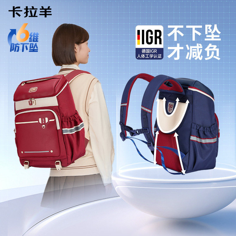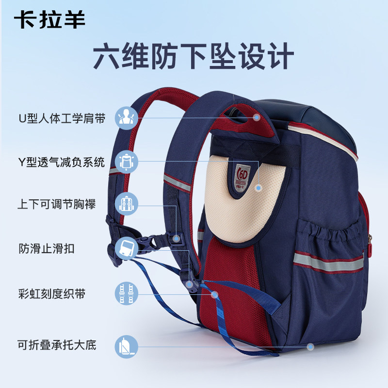 【直播加赠】卡拉羊3-6年级小学生书包减负护脊超轻儿童双肩包男女生初中生背包大容量高中生书包官方旗舰店