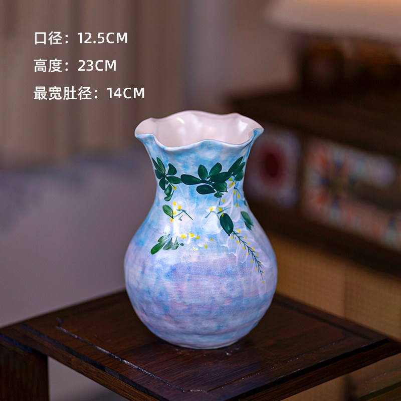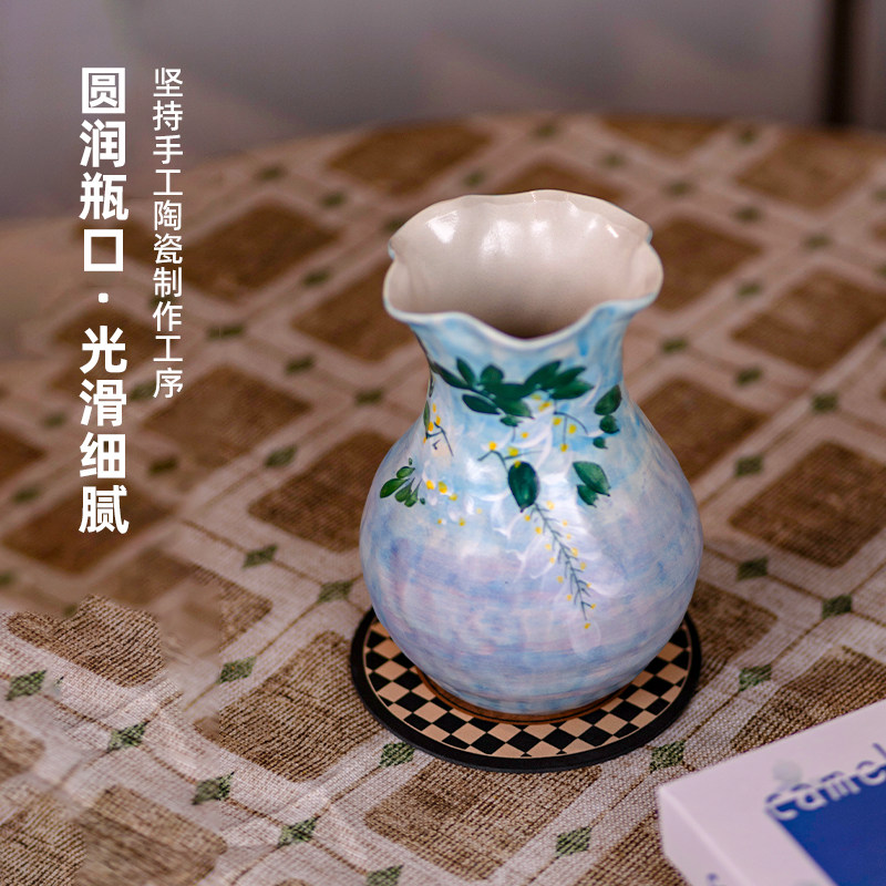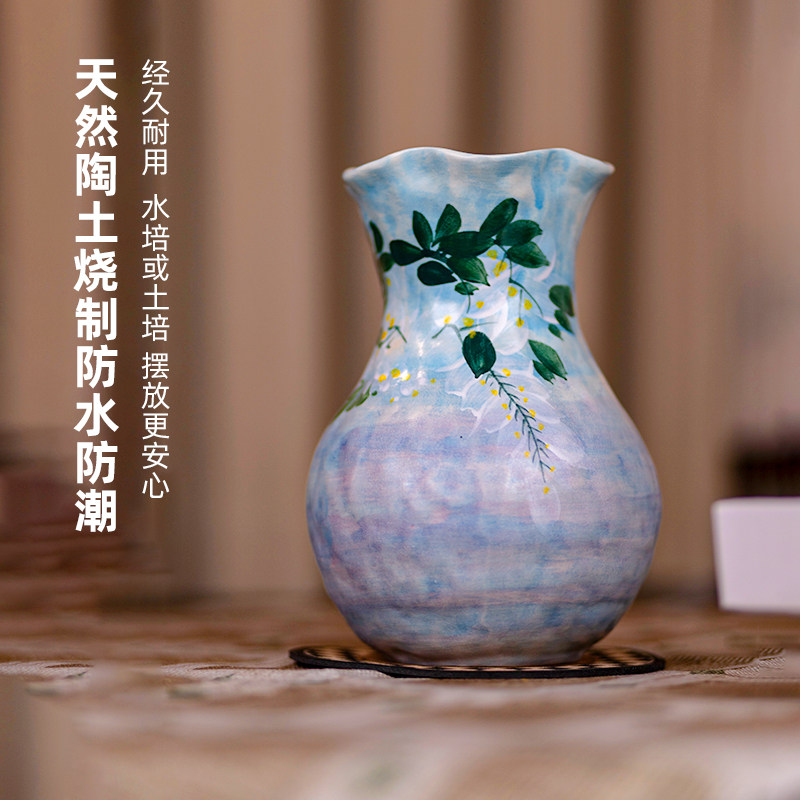 景德镇陶瓷手绘花瓶摆件插花仿真花餐桌玄关轻奢高级感大口径花器