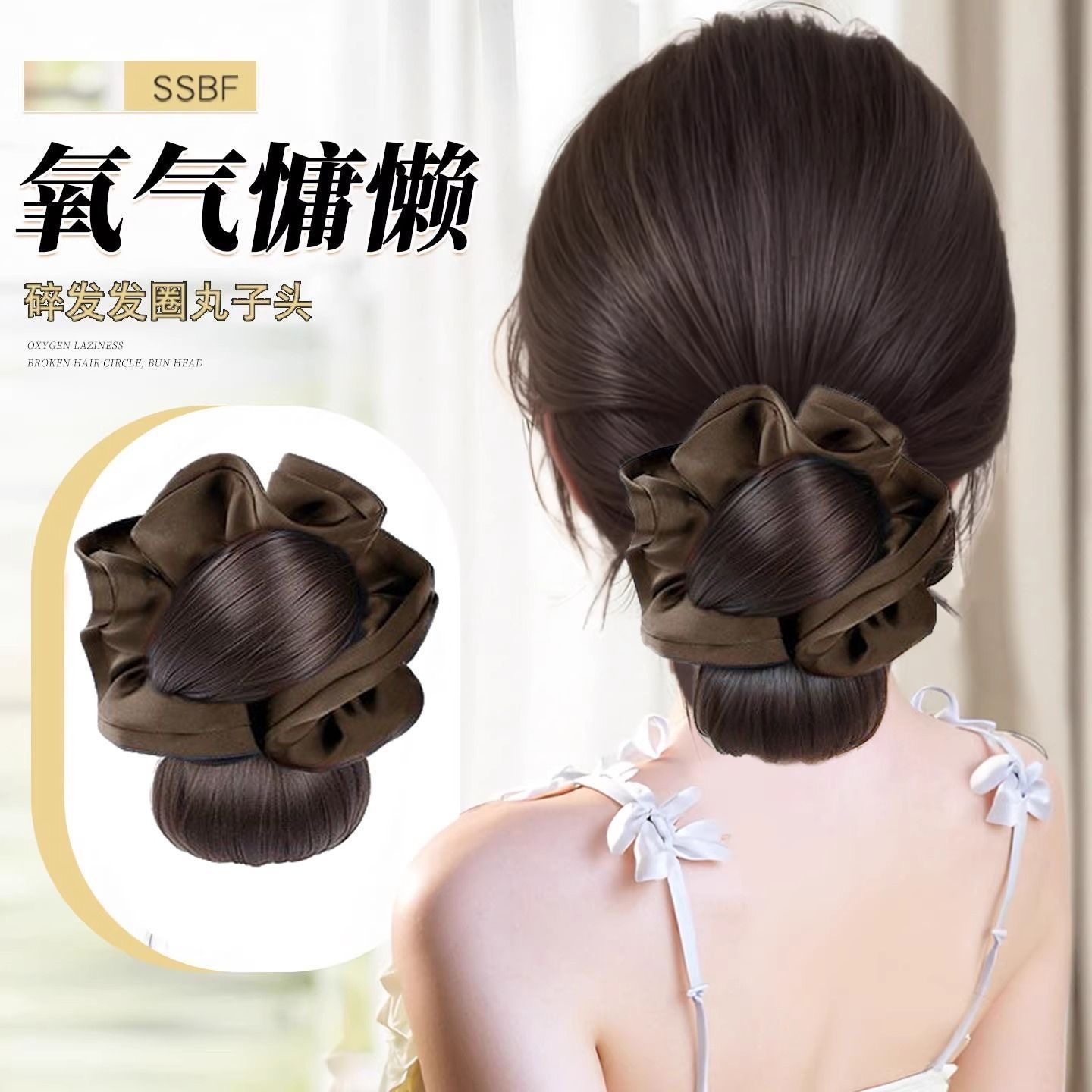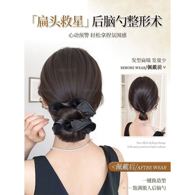 丸子头假发女抓夹低扎花苞头盘发神器后脑勺发包发饰发量少蓬松