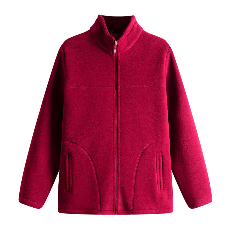 妈妈摇粒绒外套冬装加绒女装中老年人抓绒衣奶奶上衣服春秋季红色