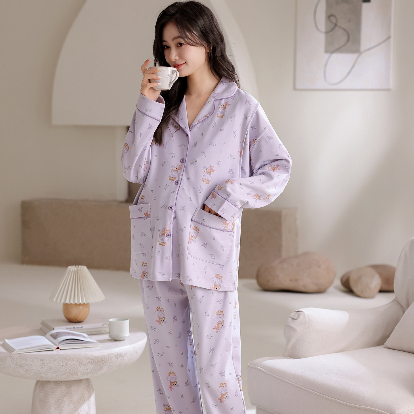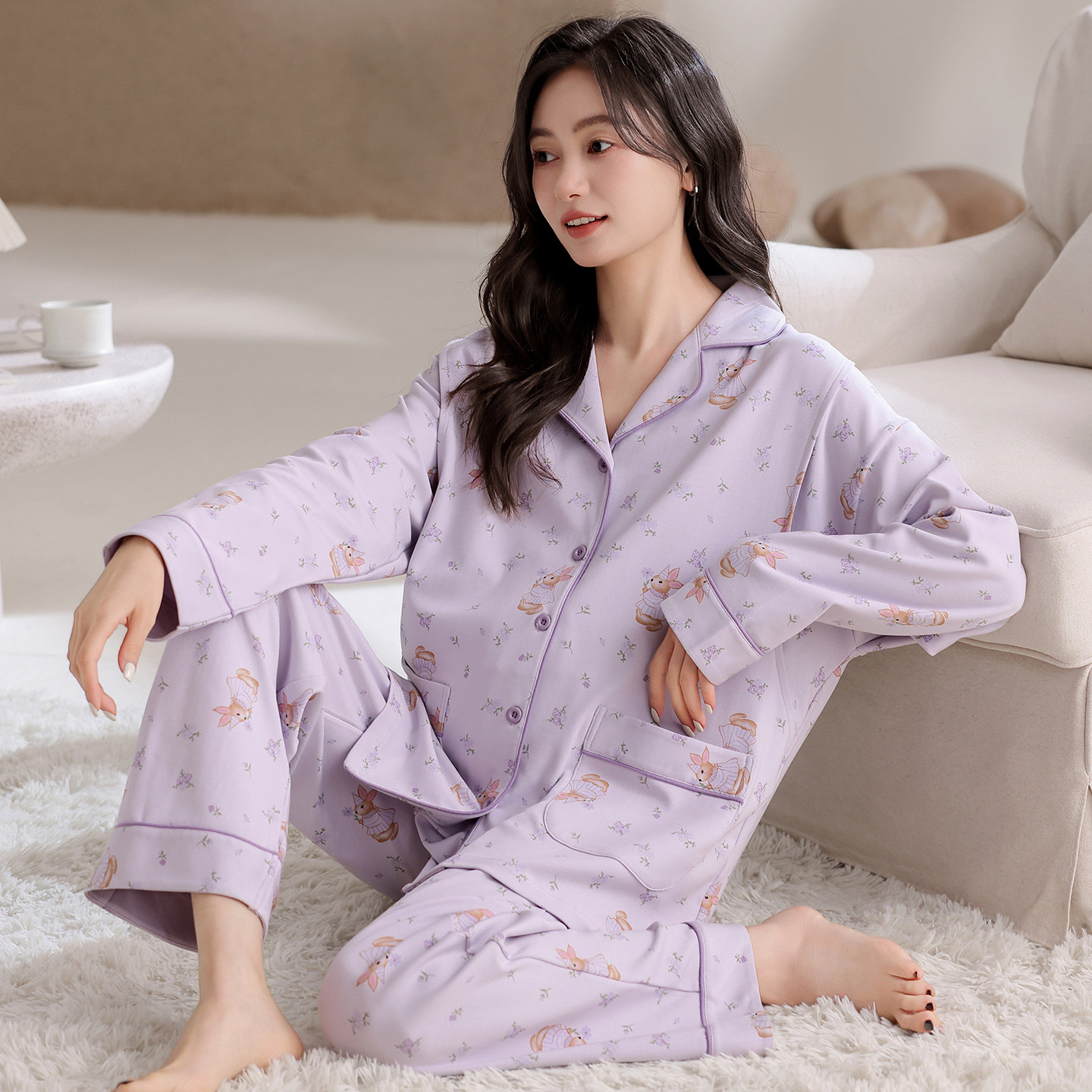 带胸垫奶香风纯棉月子服春秋季产后产妇孕妇睡衣秋冬款哺乳喂奶衣