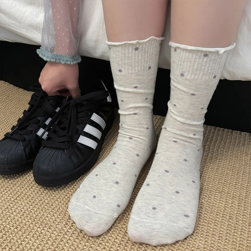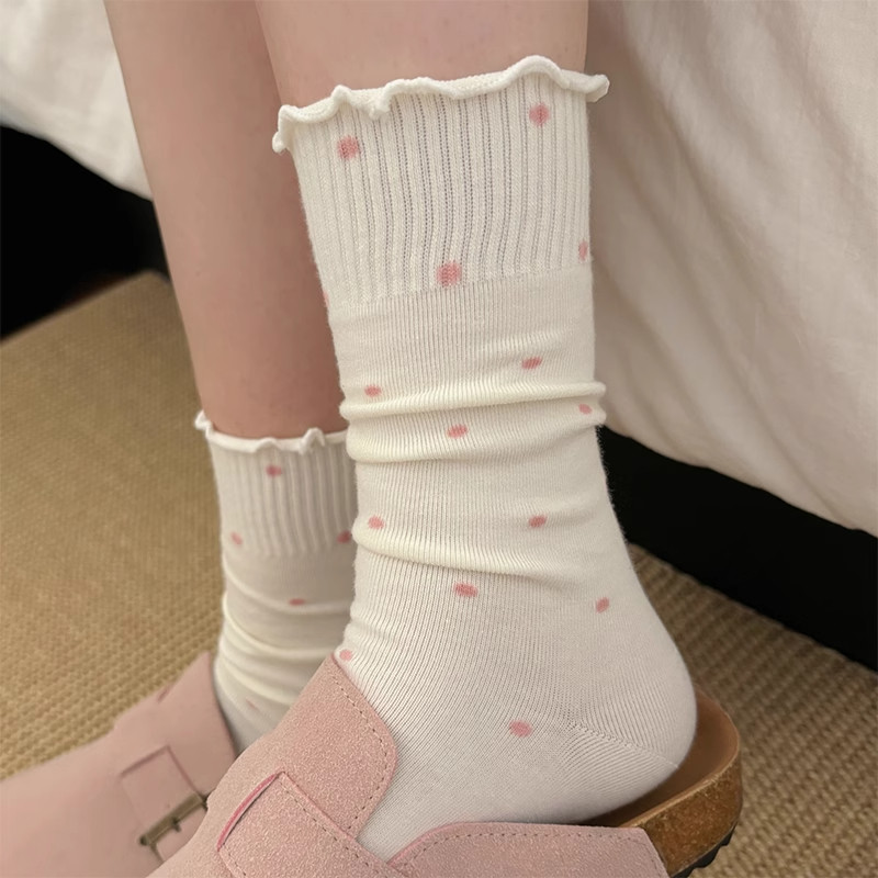 木耳花边波点堆堆袜子女春夏纯棉中筒袜ins潮薄款日系芭蕾风长袜