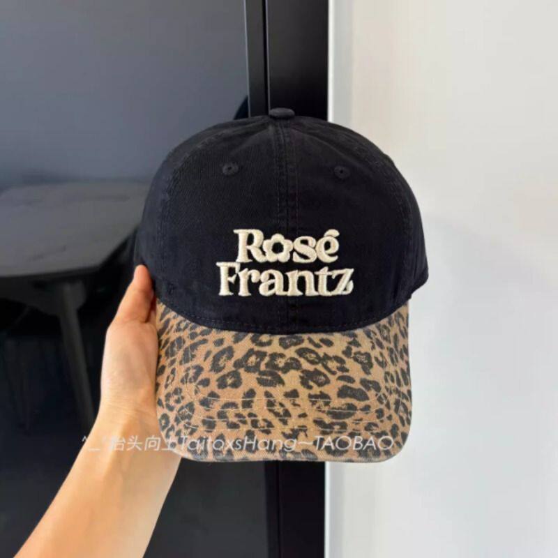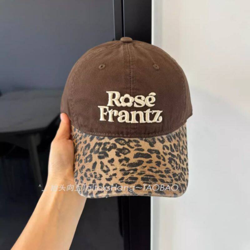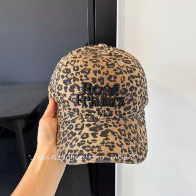 美式复古豹纹刺绣棒球帽女显脸小鸭舌帽宽帽檐大头围软顶帽子宽檐