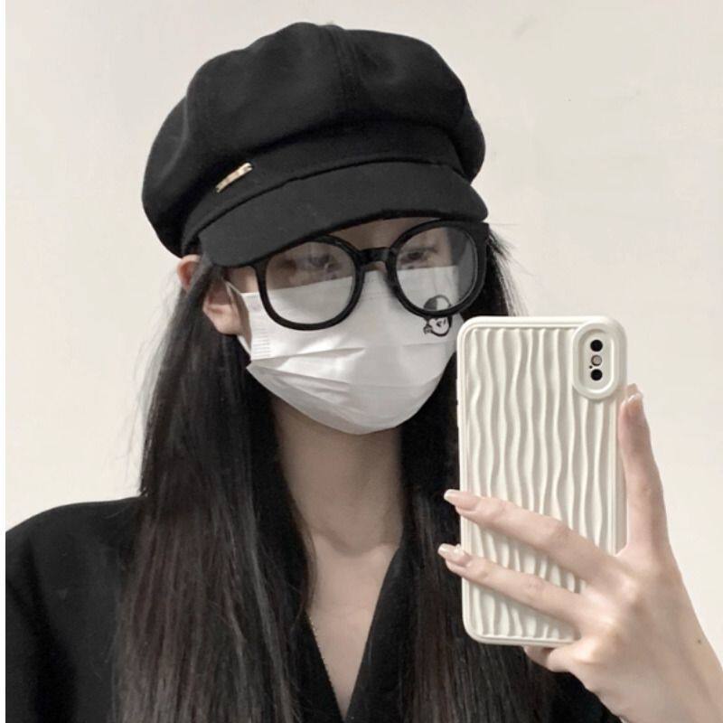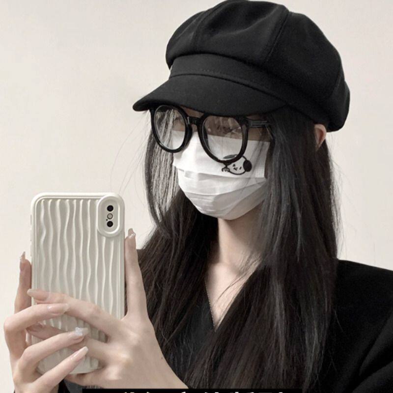 贝雷帽大头围黑色八角帽子女画家帽复古新款显脸小鸭舌报圆脸秋季