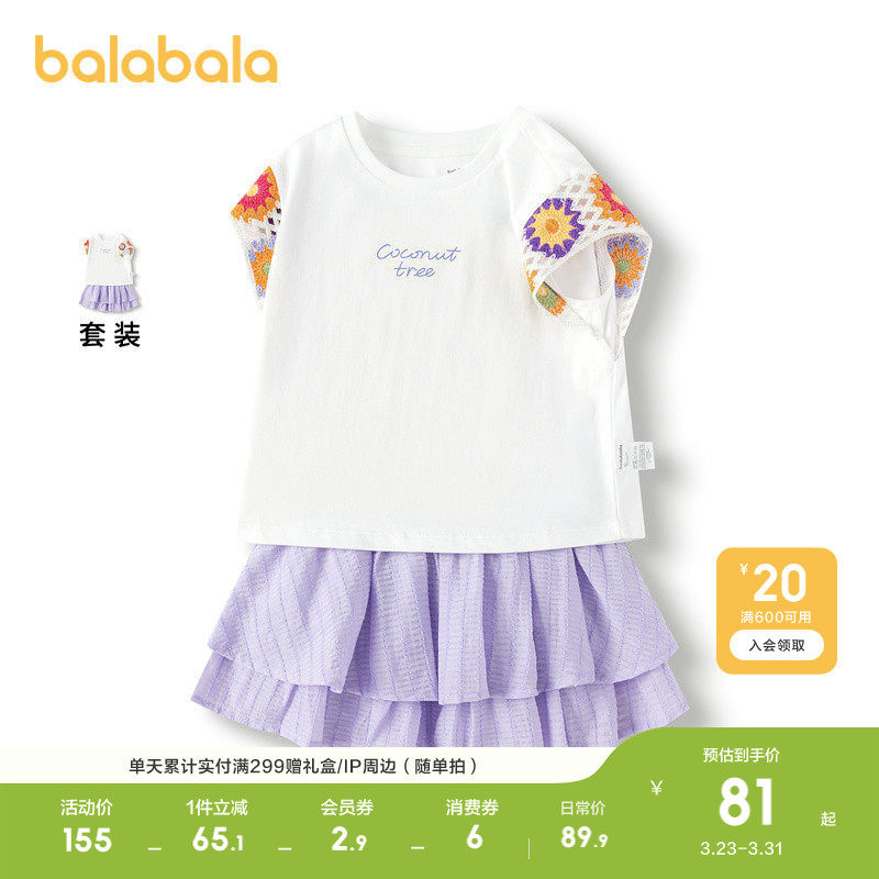 巴拉巴拉童装女童短袖套装短裙两件套儿童衣服宝宝夏装设计感洋气
