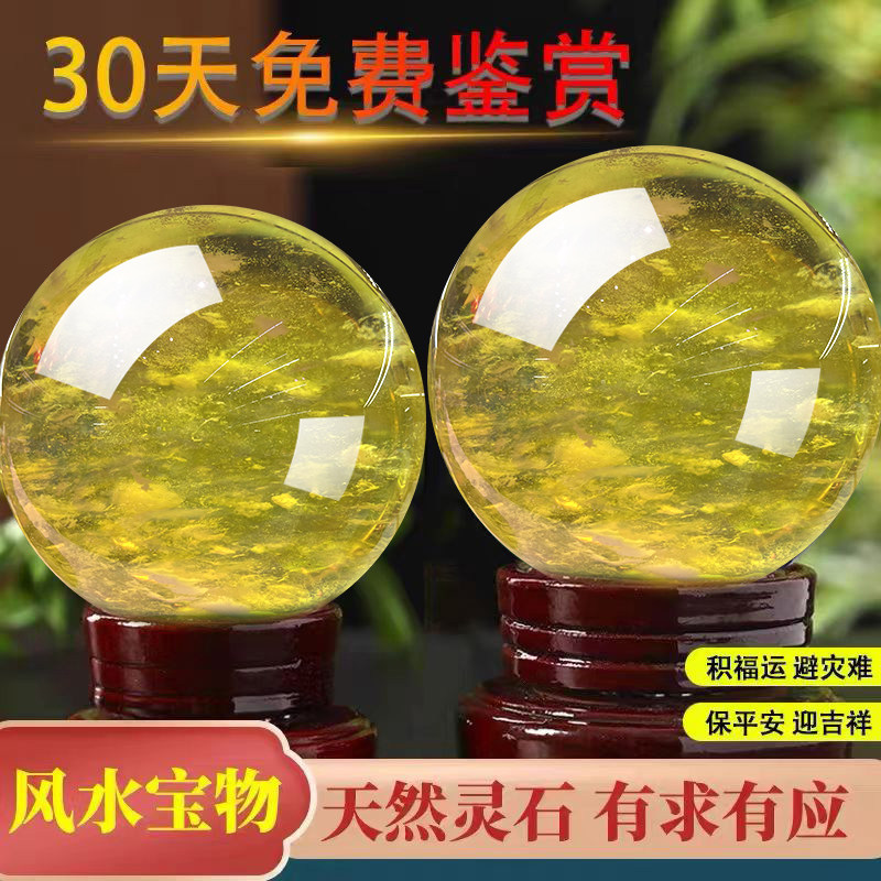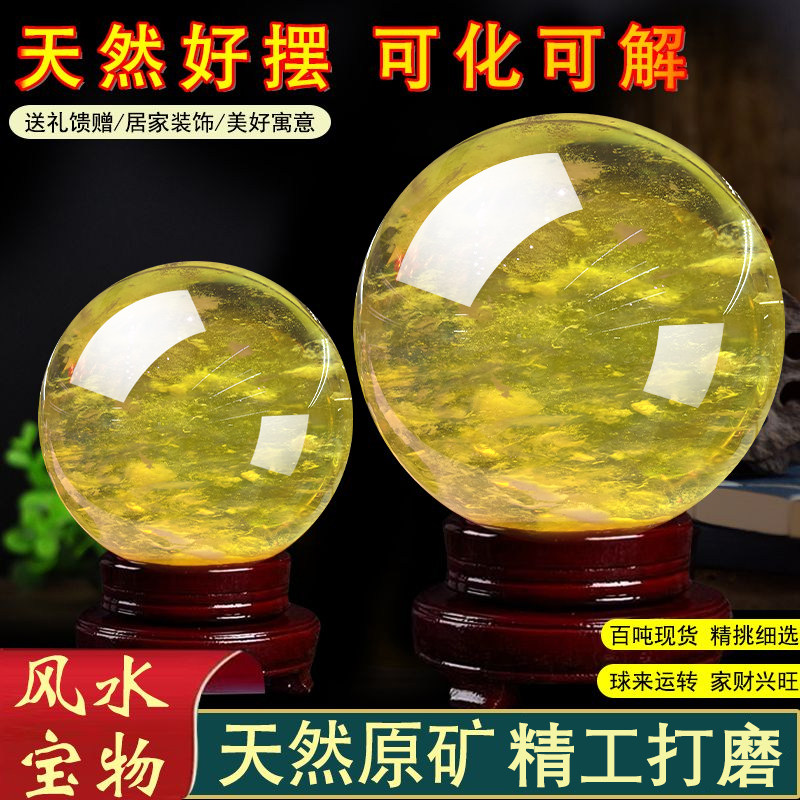 天然黄色水晶球摆件纯手工熔炼打磨开业乔迁居家装饰办公风水礼品