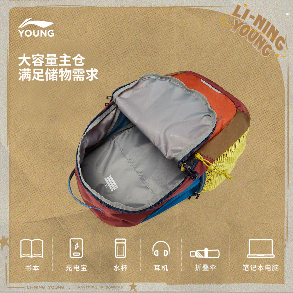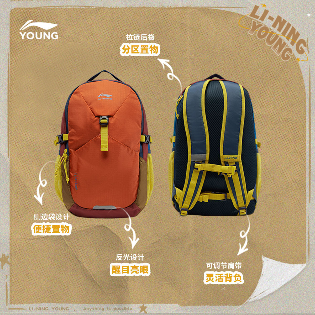 李宁童双肩包男女大童2026新款运动生活系列背包书包反光运动包
