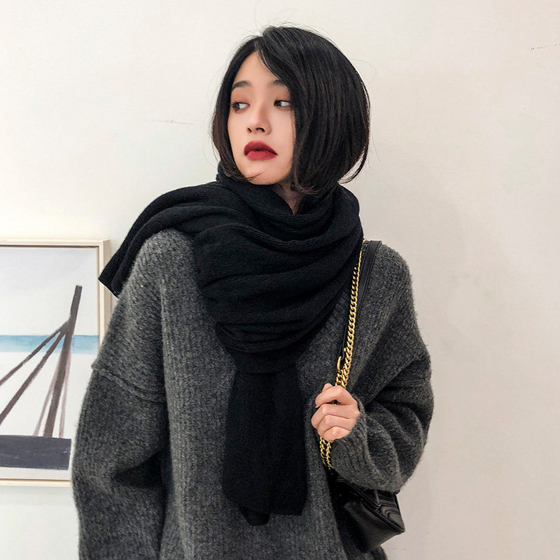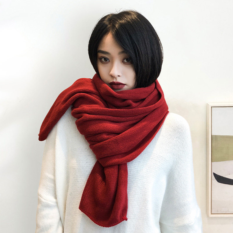针织毛线红色围巾冬季女百搭可爱少女学生软糯秋季披肩保暖厚围脖