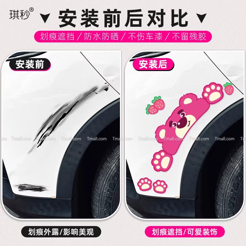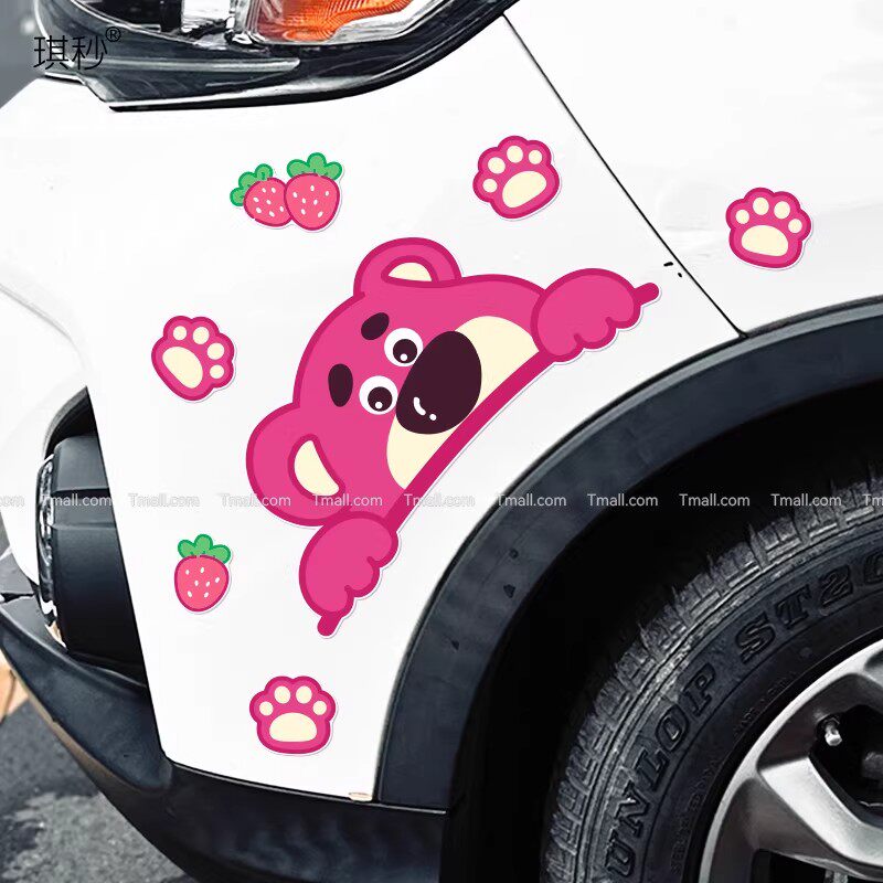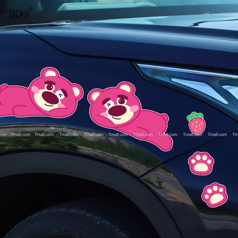 草莓熊汽车贴纸轮眉保险杠车身贴划痕遮挡防水电动车个性创意贴画