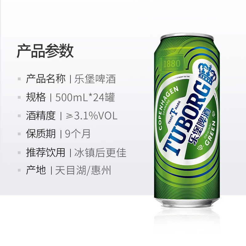 乐堡Tuborg啤酒500ml*24罐嘉士伯清爽型拉格小麦啤酒整箱装