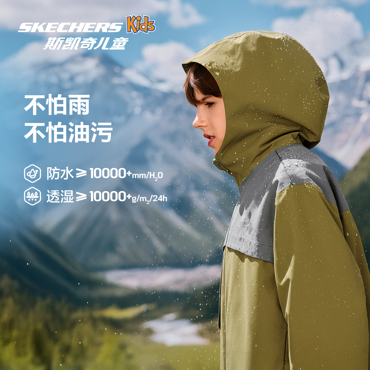 Skechers斯凯奇儿小魔方秋冬童装冲锋衣三合一男女童户外防水外套