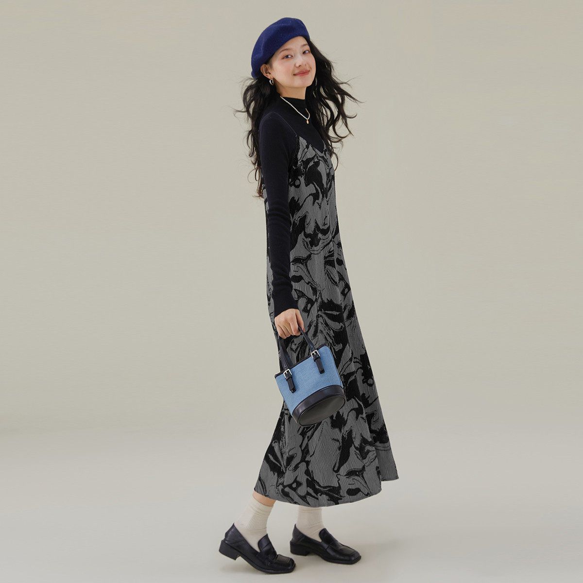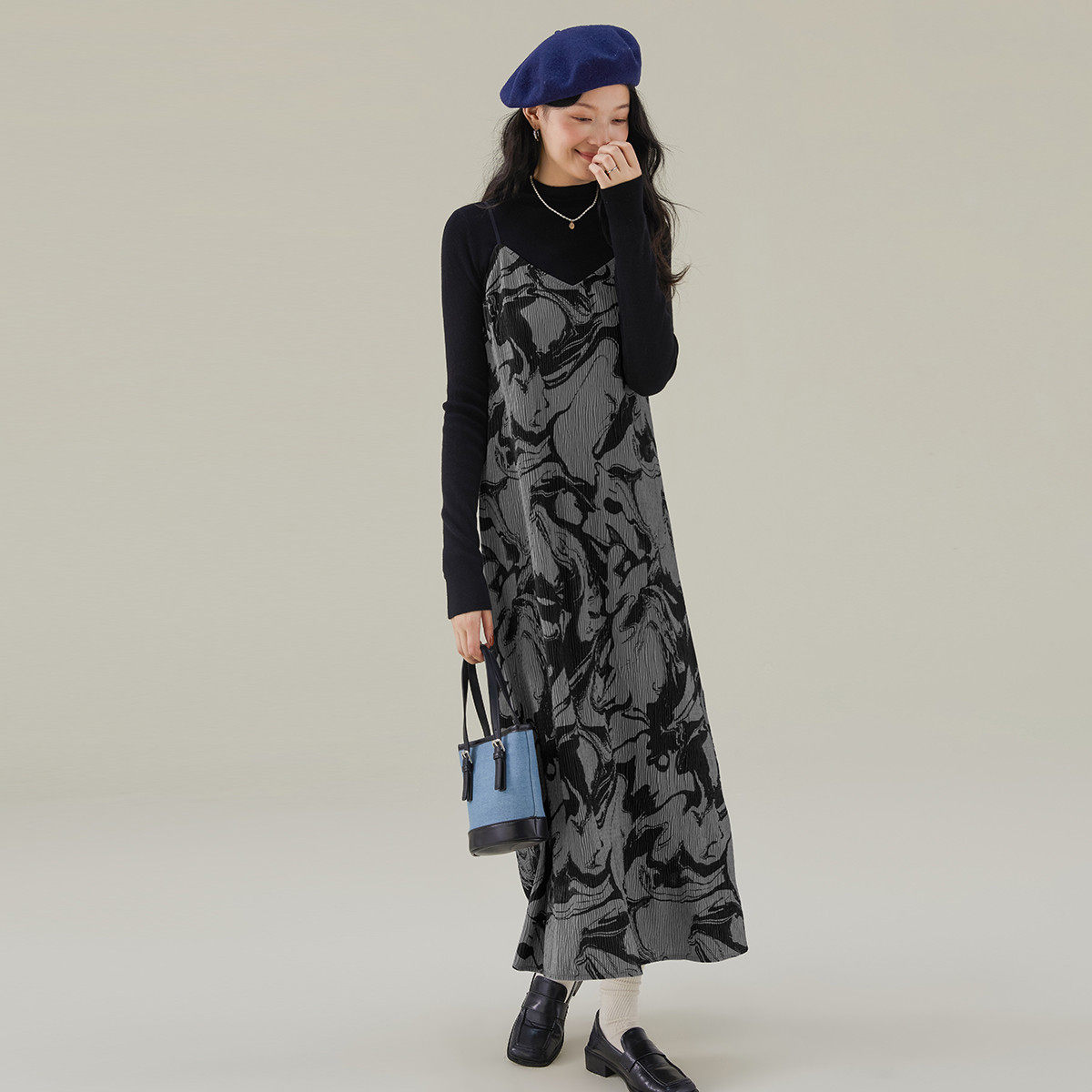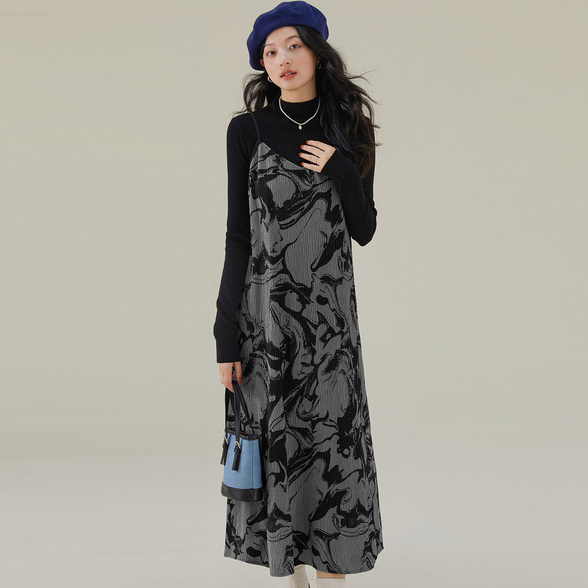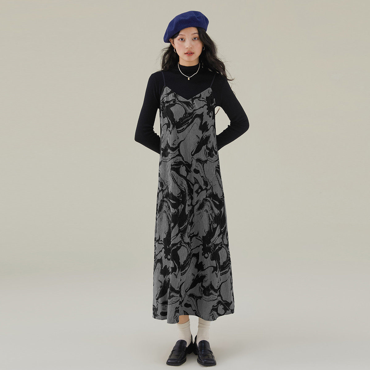 one more水墨画吊带裙高级感背带裙女2025印花连衣裙长裙气质裙子