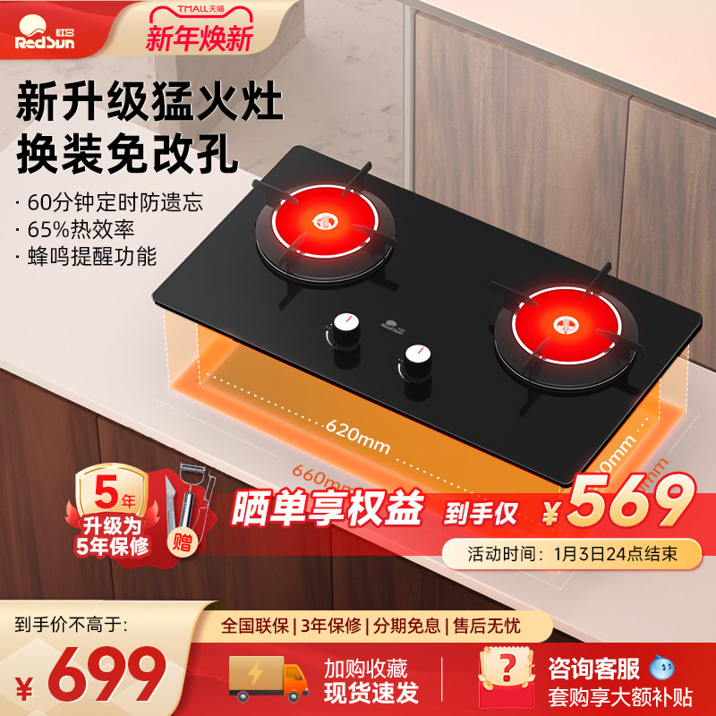 红日红外线燃气灶免改孔猛火双灶家用嵌入式天然气煤气炉灶EX06B