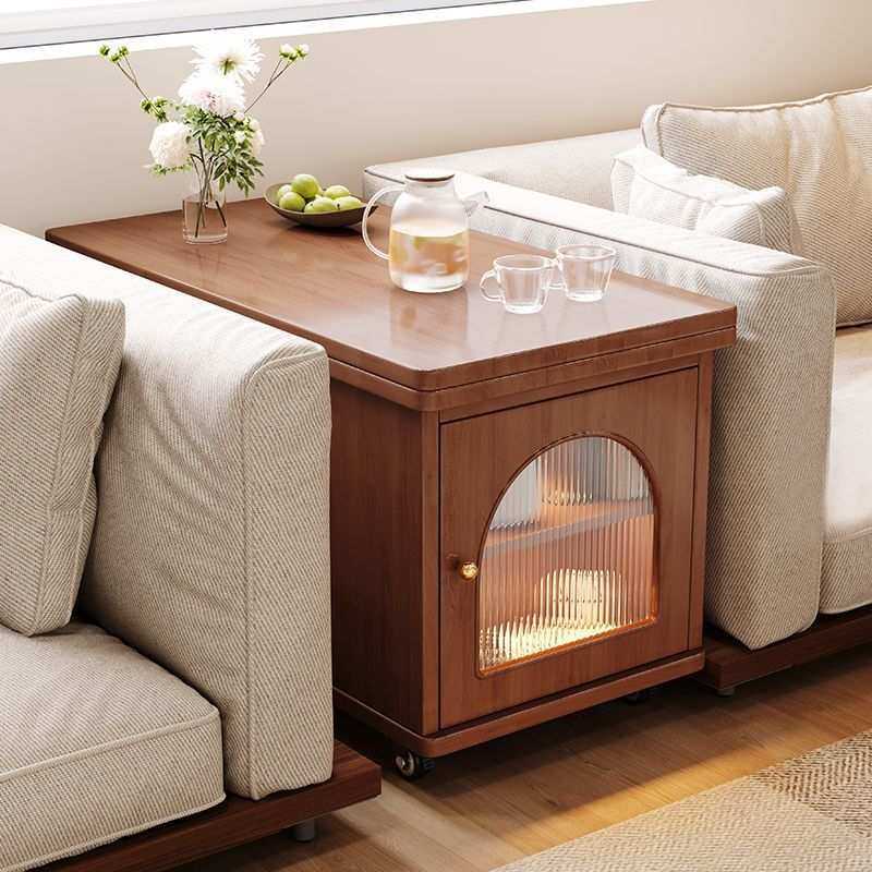 实木可折叠茶桌移动式茶几小户型客厅家用沙发边柜小推车巴士边几