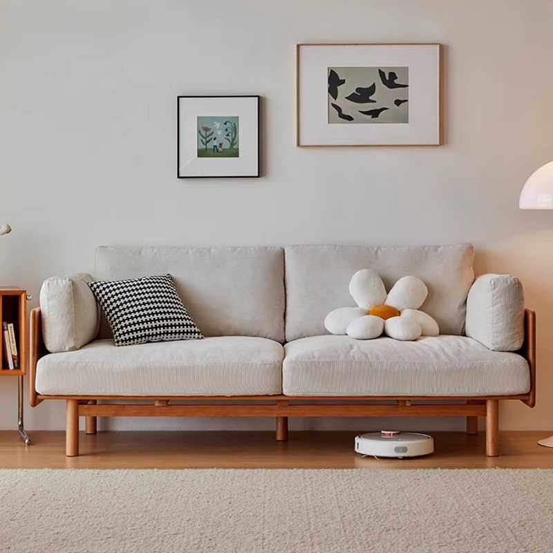 北欧实木沙发布艺客厅现代简约小户型单人三人冬夏两用真皮艺沙发