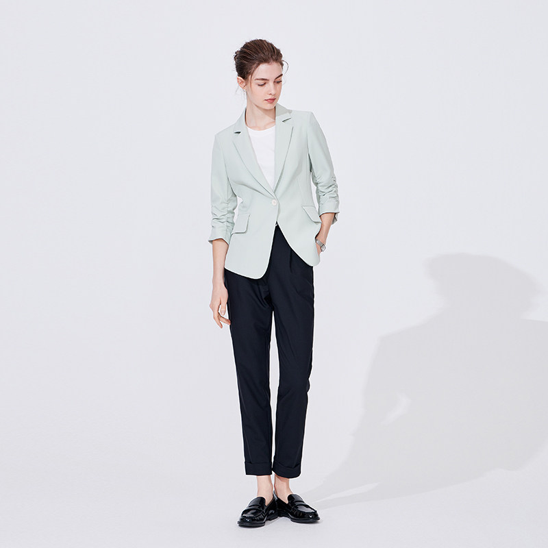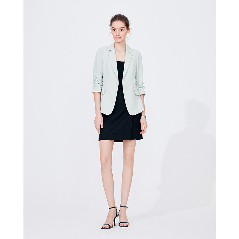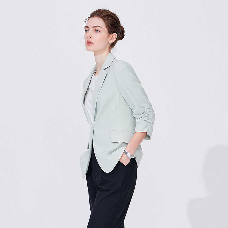 芝美日禾 极简弹力针织小个子西装外套女单层修身一粒扣职业正装