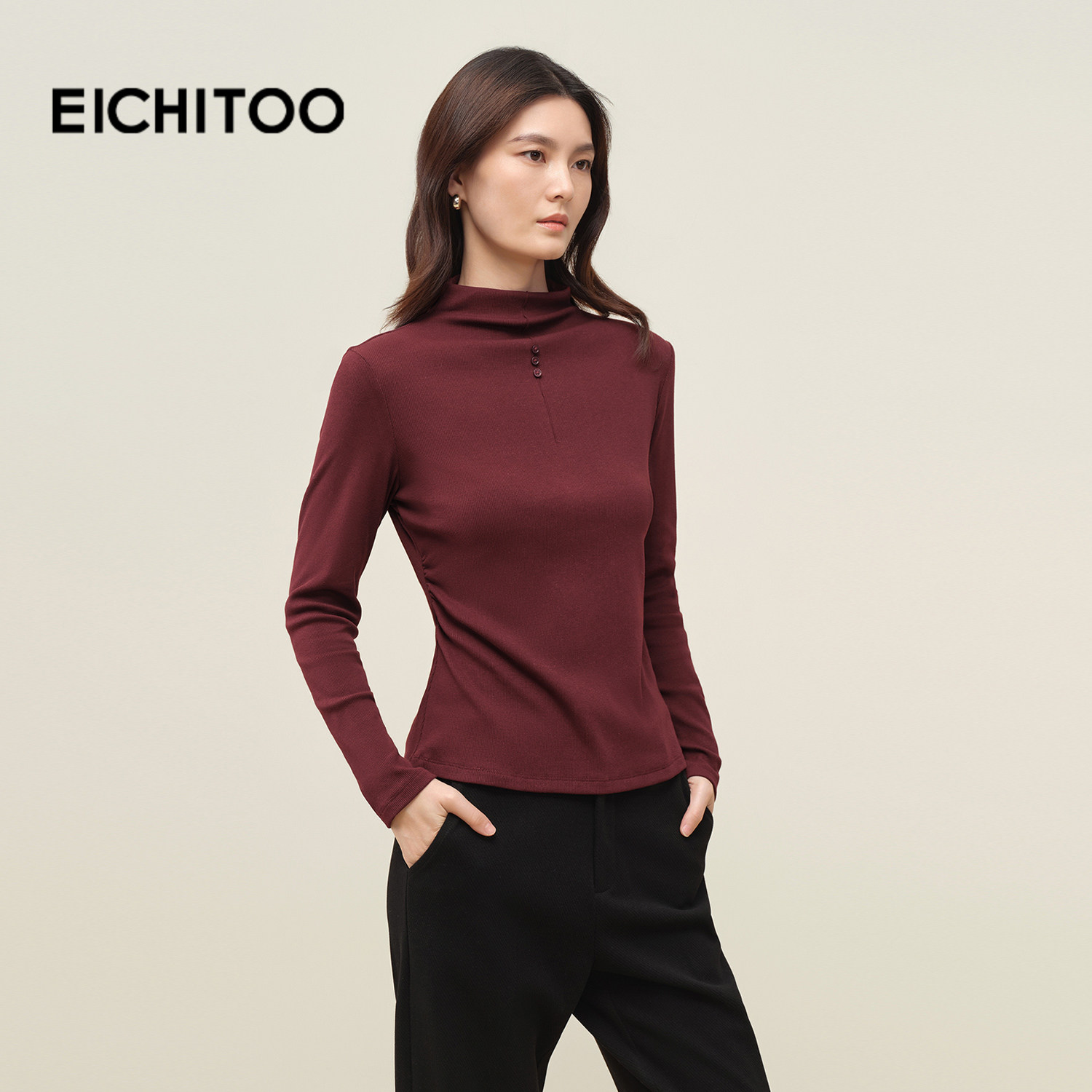 爱居兔保暖半高领打底针织衫2025年冬季新款女修身显气质红上衣
