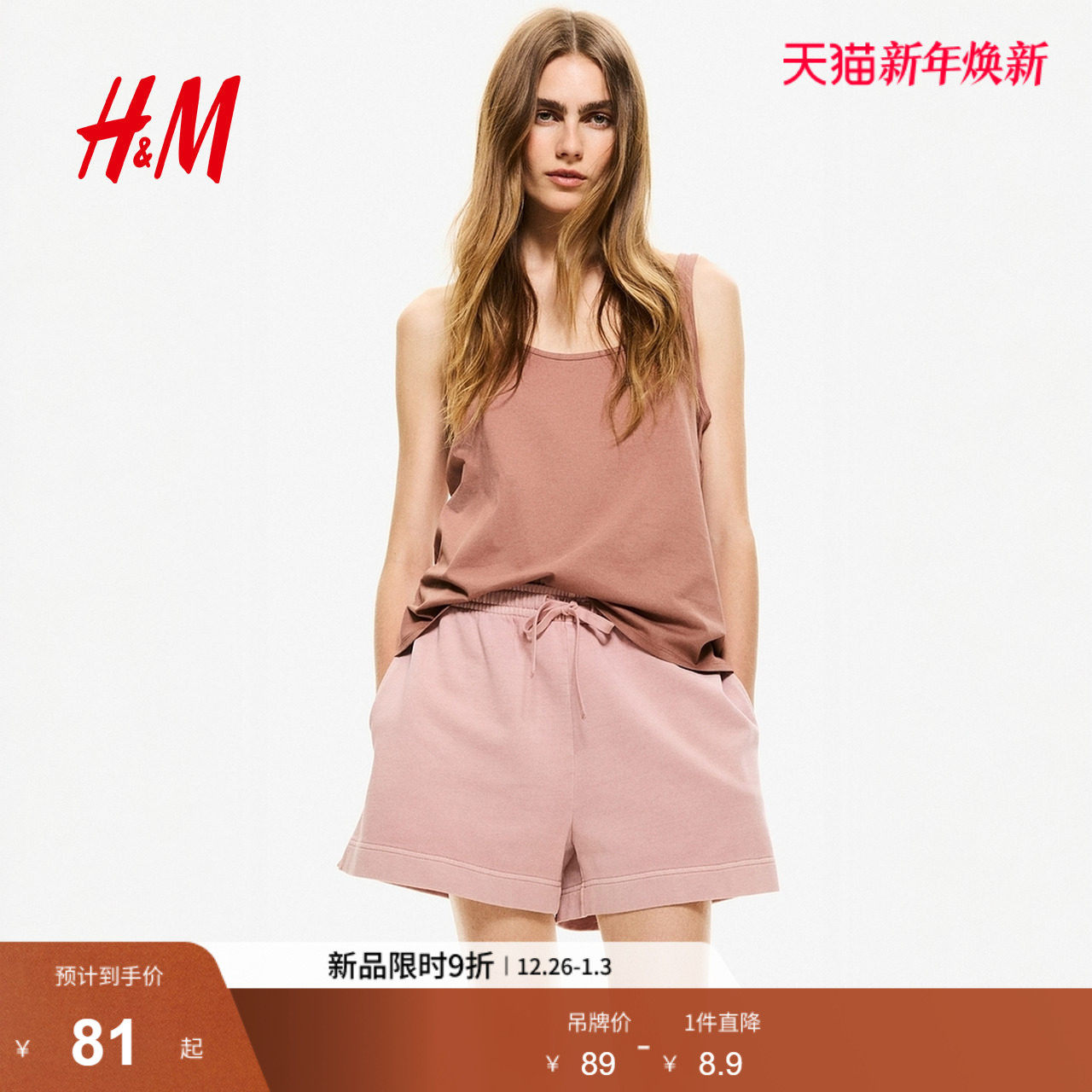 HM女装背心2025年新款时尚简约气质酒红色打底棉质背心1290992