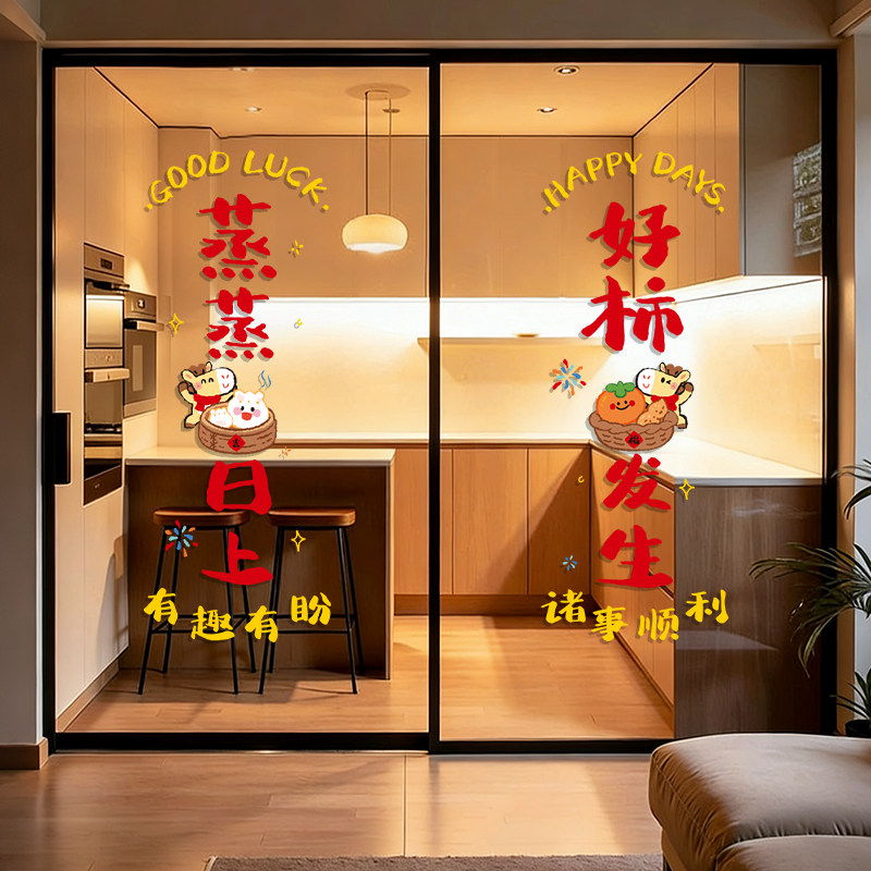 2026新款厨房防油贴纸耐高温灶台油烟机蒸蒸日上乔迁之喜新年装饰