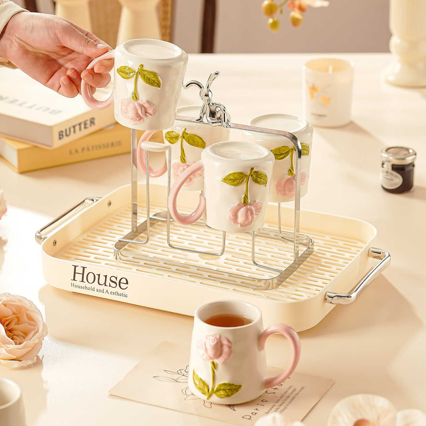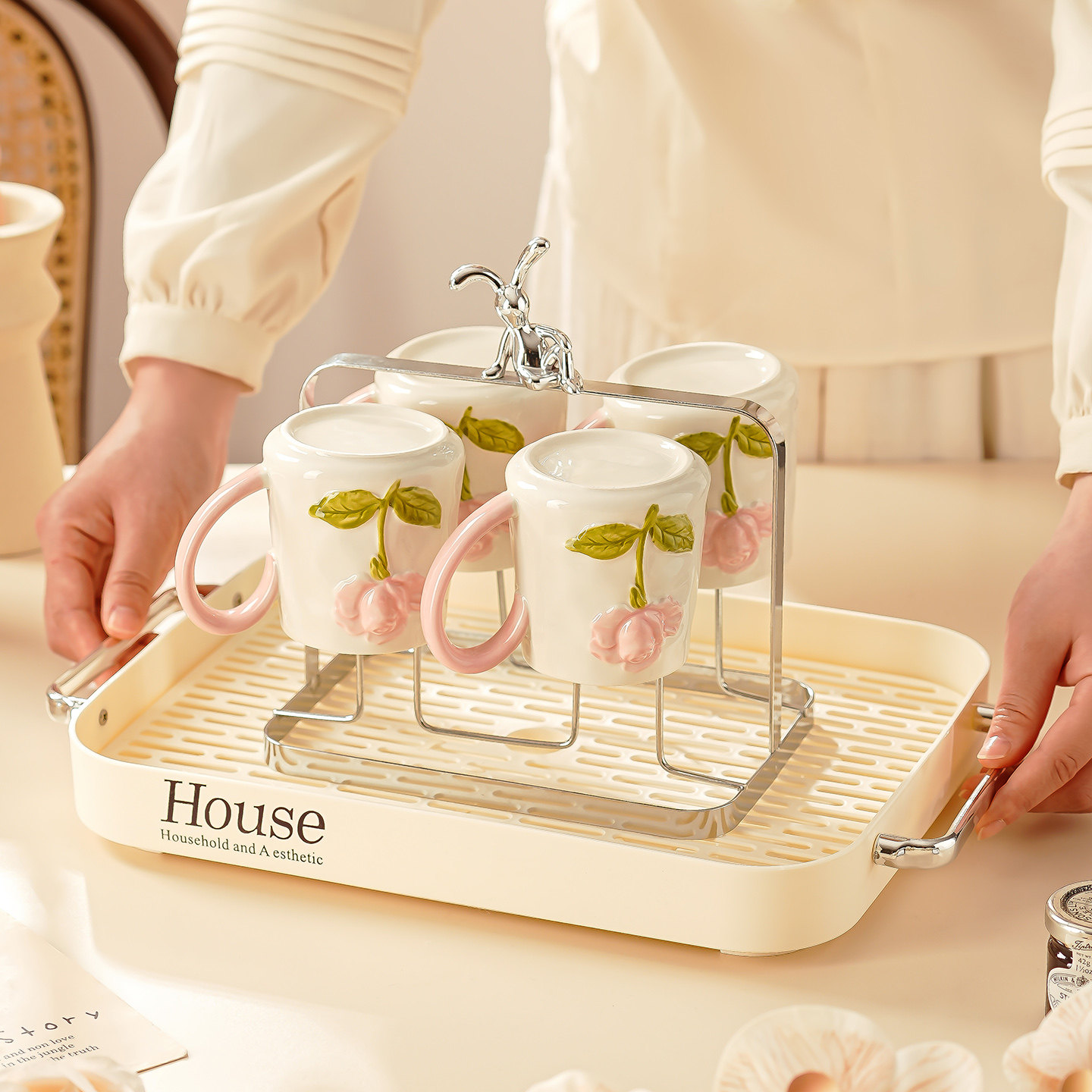客厅杯子套装新居乔迁茶杯茶具家庭杯具套装家用待客轻奢陶瓷水杯