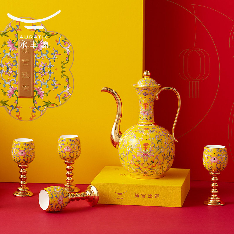 永丰源 新宫廷瓷10头陶瓷酒具套装 烈酒杯白酒壶家用酒具商用礼盒