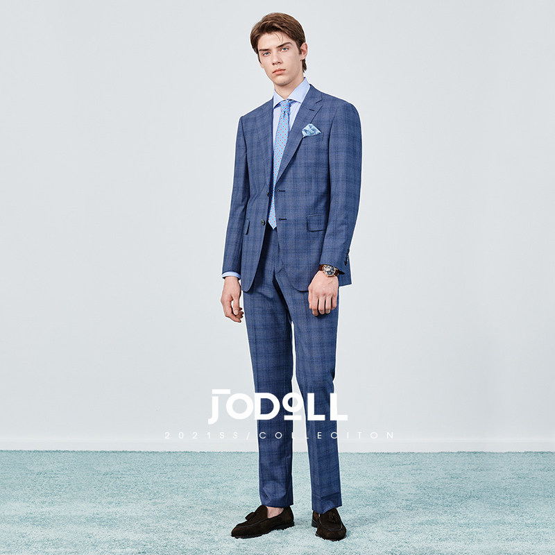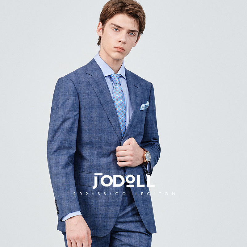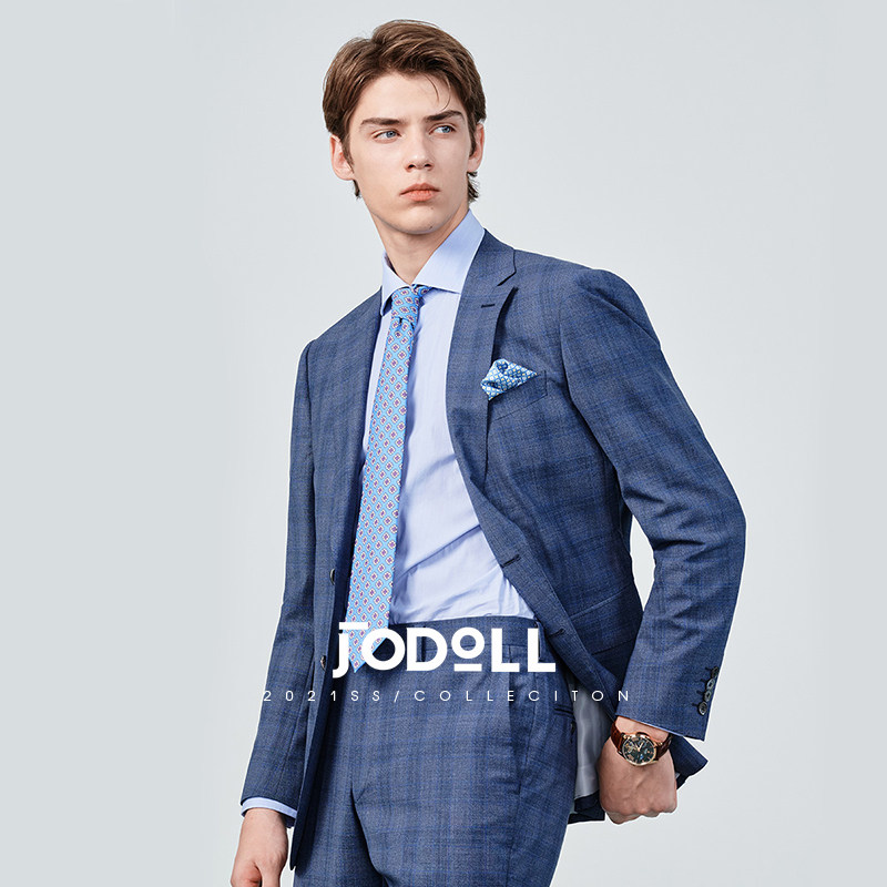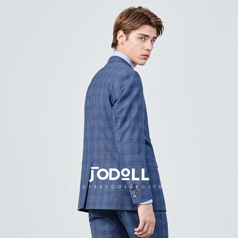 JODOLL乔顿西服套装上衣男商务帅羊毛桑蚕丝暗格纹格子小西装外套