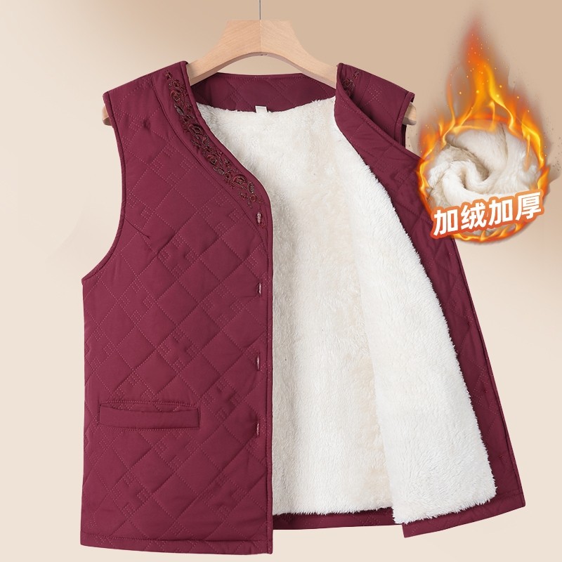 中老年人冬装保暖马甲女奶奶加绒加厚马夹老太太妈妈秋冬红色开衫