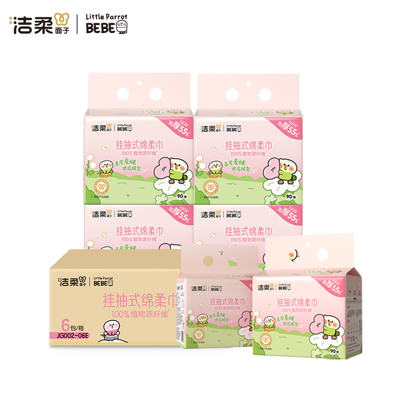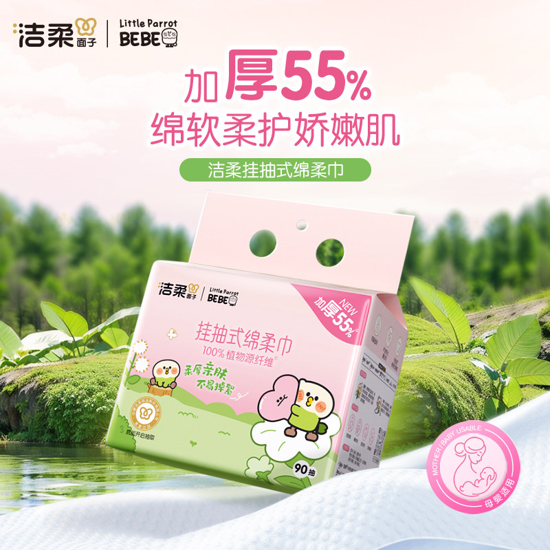 洁柔一次性洗脸巾壁挂式擦脸巾小鹦鹉联名家用洁面卸妆绵柔巾90抽