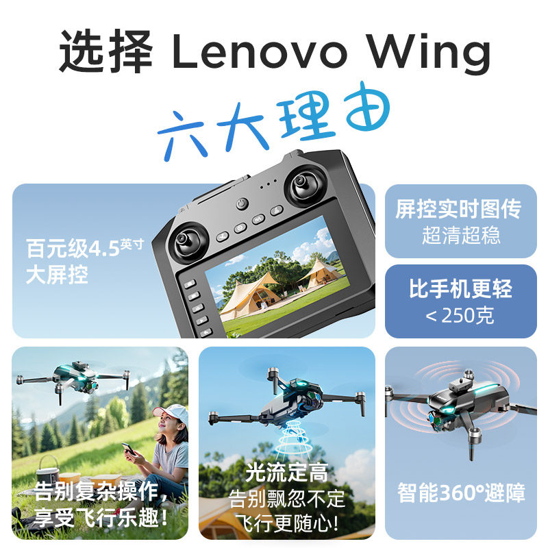 圣诞Lenovo联想2025新款4.5寸液晶屏幕遥控无人机专业高清航拍超长续航遥控飞机学生男孩玩具生日礼物入门