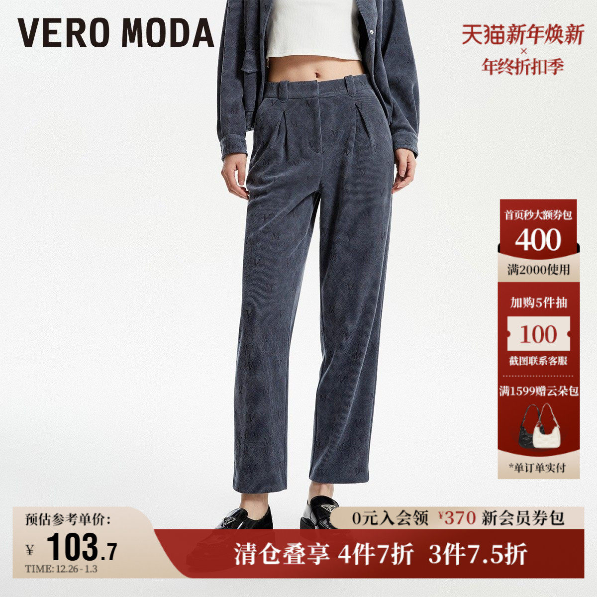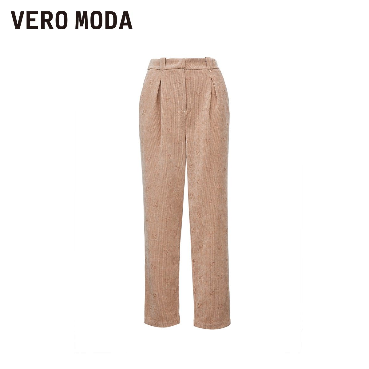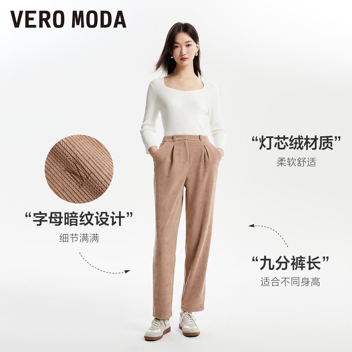 Vero Moda奥莱休闲裤女秋冬清仓宽松灯芯绒字母九分裤百搭裤子