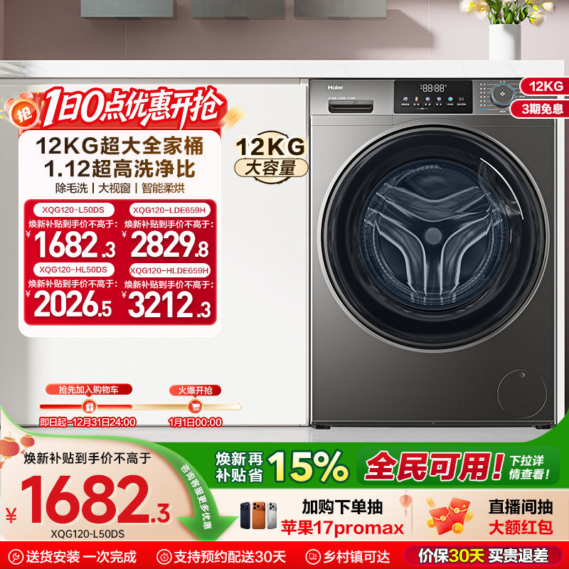 [以旧换新]海尔滚筒洗衣机12公斤家用全自动大容量洗脱一体50DS