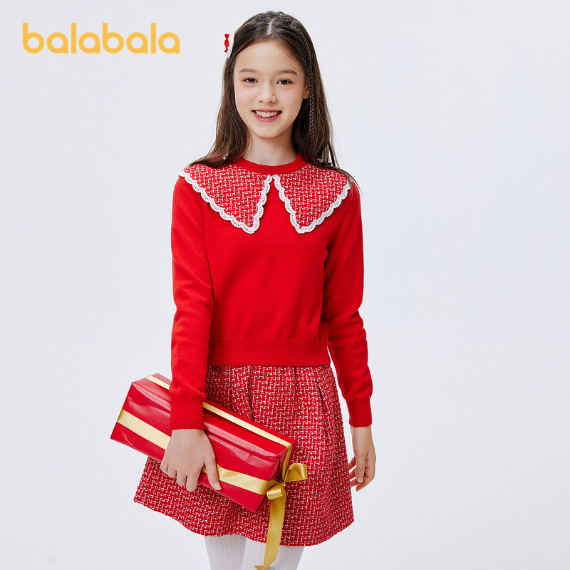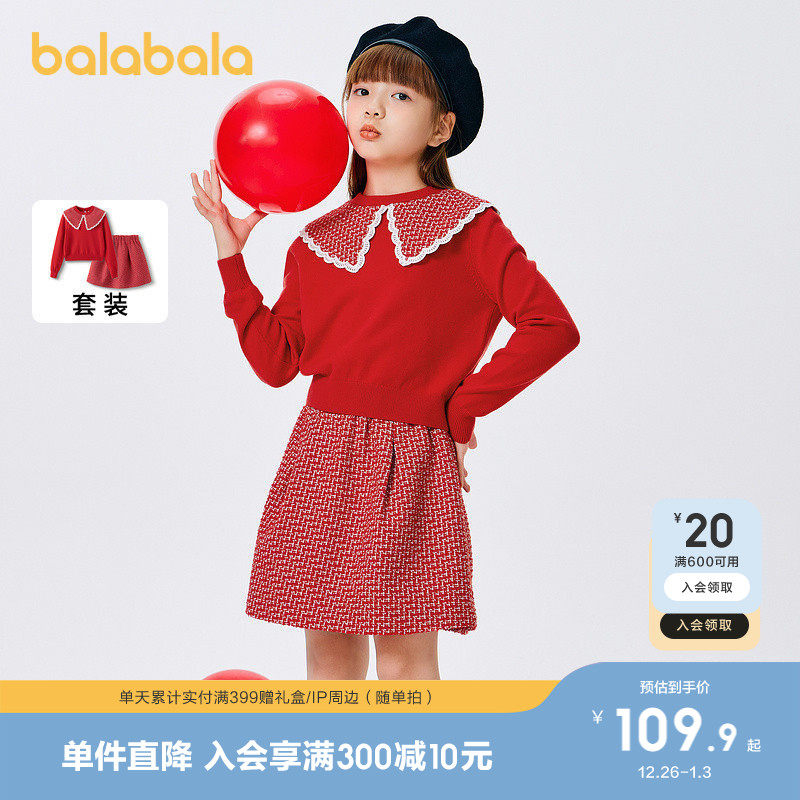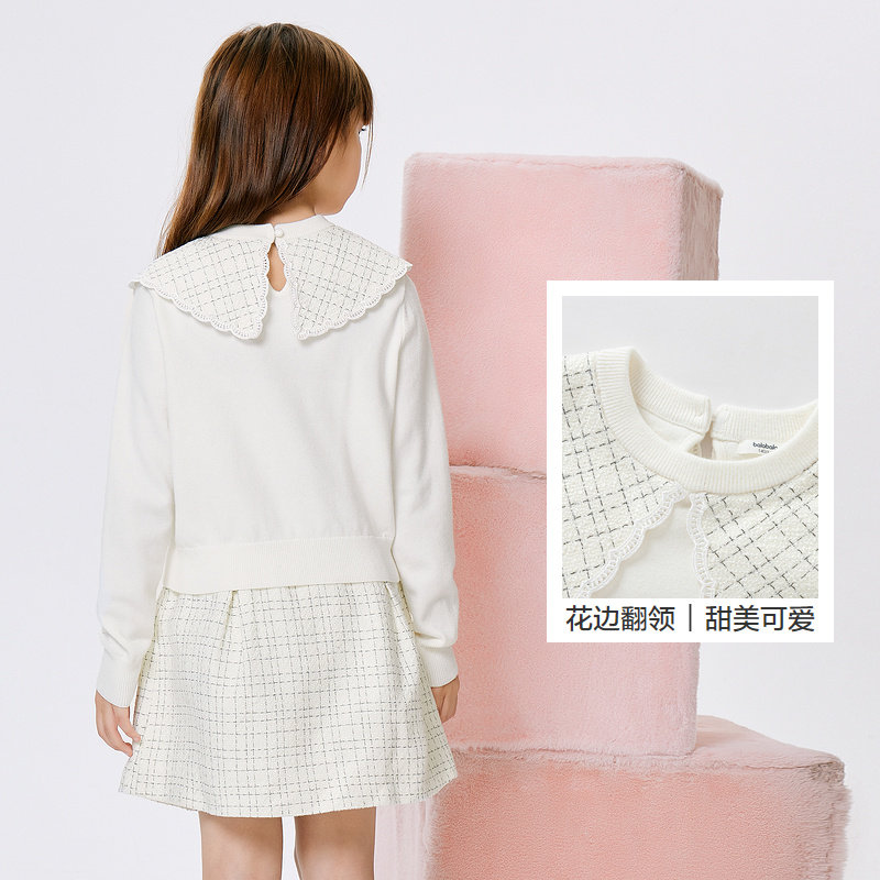 巴拉巴拉儿童套装女童童装翻领中大童小香风两件套潮甜美洋气时尚