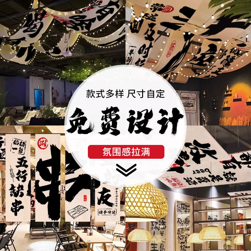 小酒馆室内氛围旗帜定制网红啤酒烧烤店装饰吊顶标语挂布设计酒吧氛围文化背景条幅广告布露营风门头横幅定做