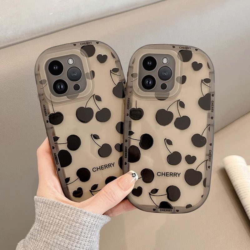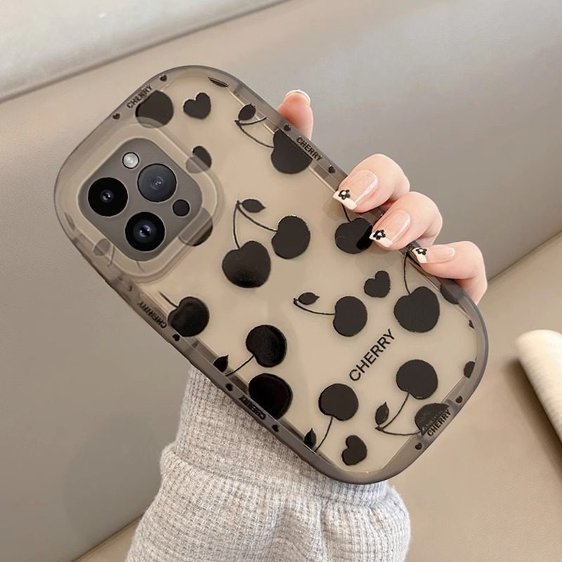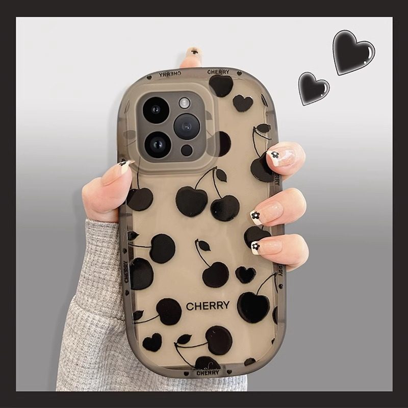 新女全包高端个性创意网红硅胶防摔黑色樱桃