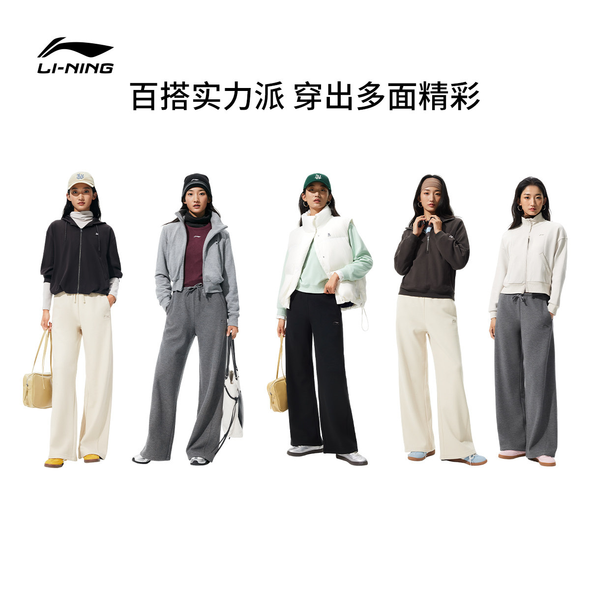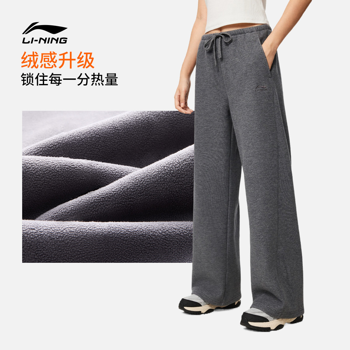 李宁卫裤女秋冬加绒束脚女士宽松休闲裤子女针织百搭毛圈运动长裤