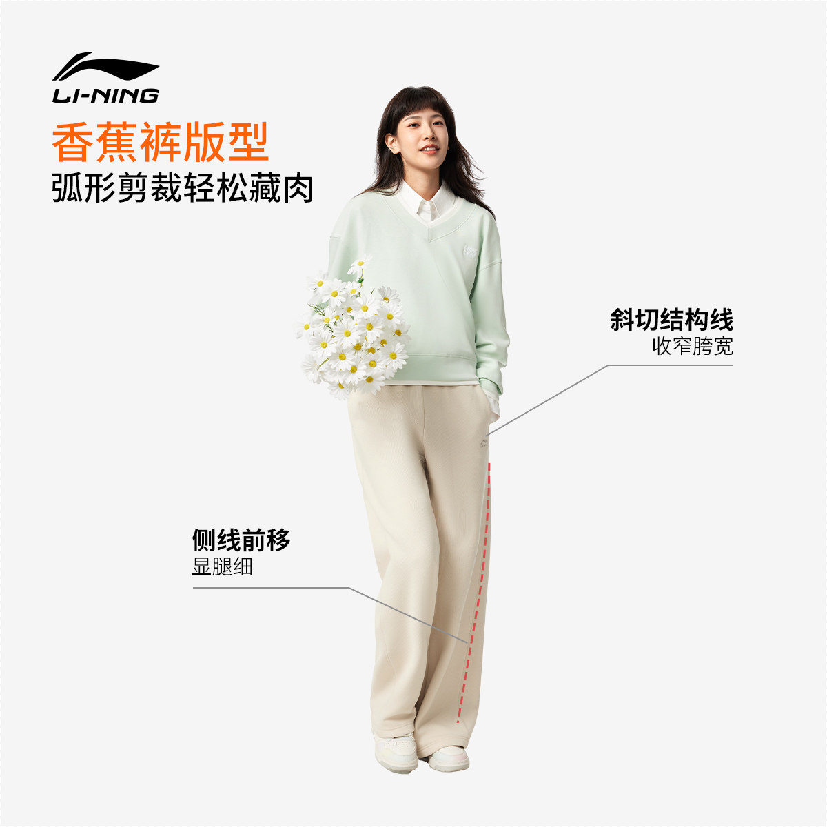 李宁热力裤丨阔腿裤女新款香蕉裤冬季加绒黑色卫裤休闲弯刀运动裤
