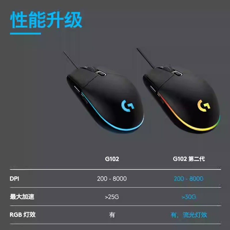 罗技G102二代有线游戏鼠标机械笔记本台式机电脑办公电竞专用吃鸡