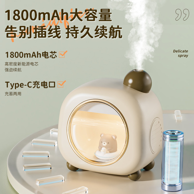 矿泉水瓶加湿器便携式小型无线简易USB充电款空气大喷雾旅行卧室家用办公室工位桌面迷你宿舍学生静音不插电