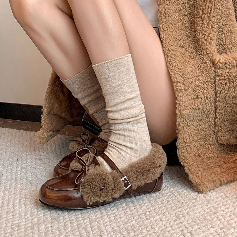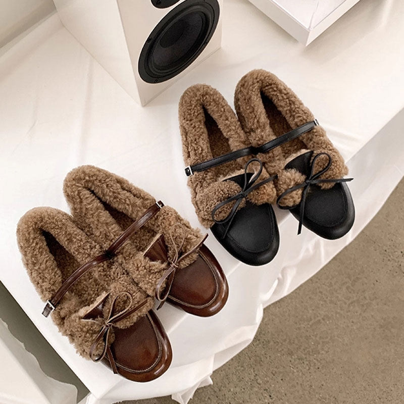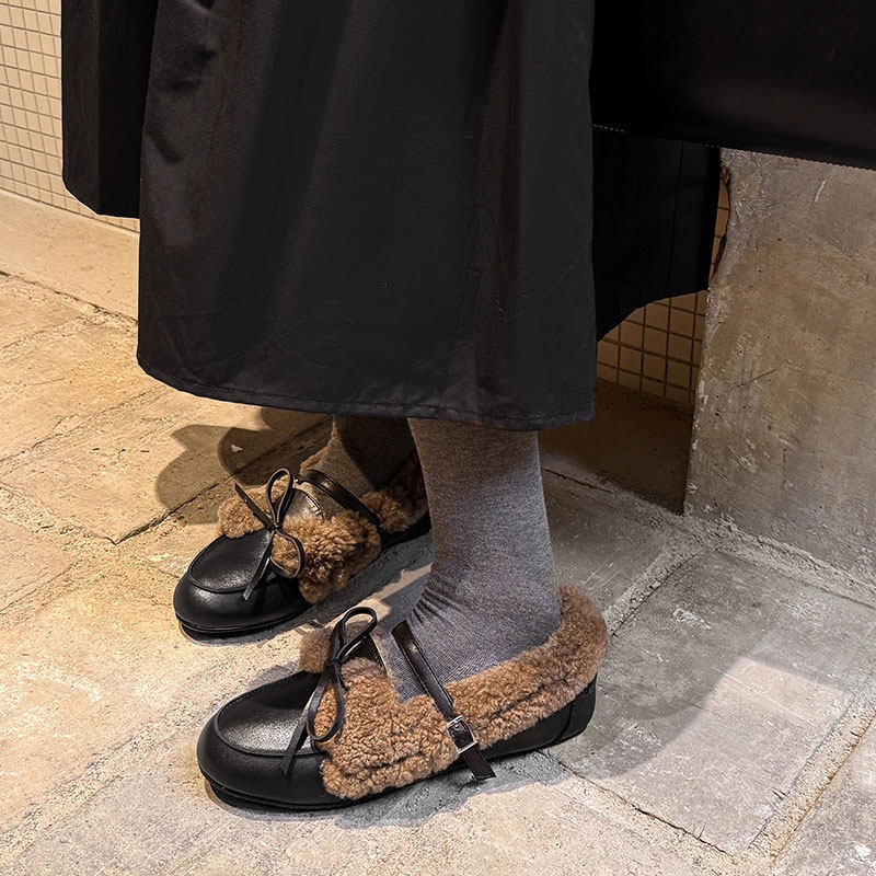 加绒小皮鞋女2025秋冬新款毛毛鞋豆豆乐福鞋单鞋保暖棉鞋防水黑色