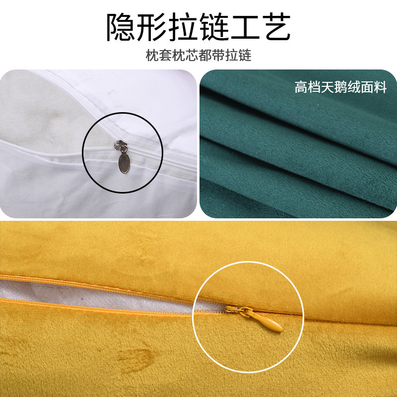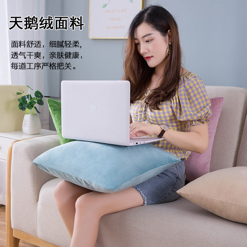 天鹅绒抱枕沙发靠垫纯色床头靠背居家布艺客厅毛绒抱枕北欧ins风